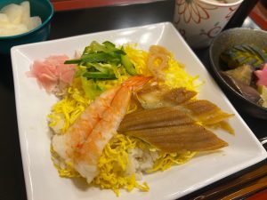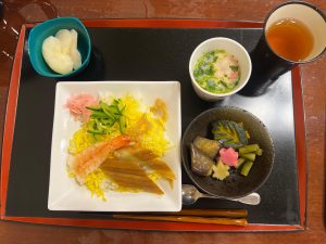 本日の昼食のメニューは散らし寿司でした。利用者様から人気のメニューの1つです!