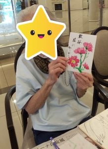 早いものでもう10月です。最近は少しずつ涼しくなり、秋も段々近づいてきます。 本日、デイケアでは絵手紙をレクリエーションで行いました。 皆さん、真剣なご様子で見本の芋や柿、花などを見ながら、とても上手に描いていらっしゃいました。