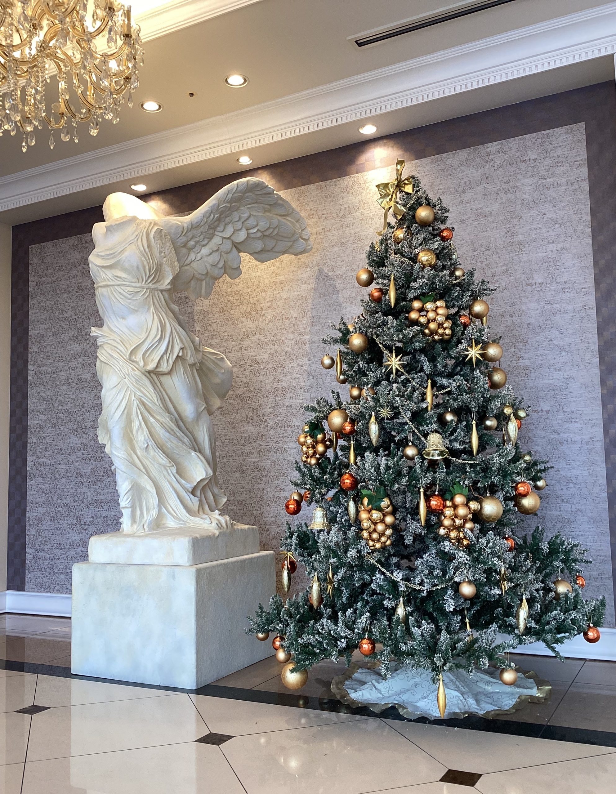 施設では、数日前から1Fエントランスに恒例の大きなクリスマスツリーを飾っています
