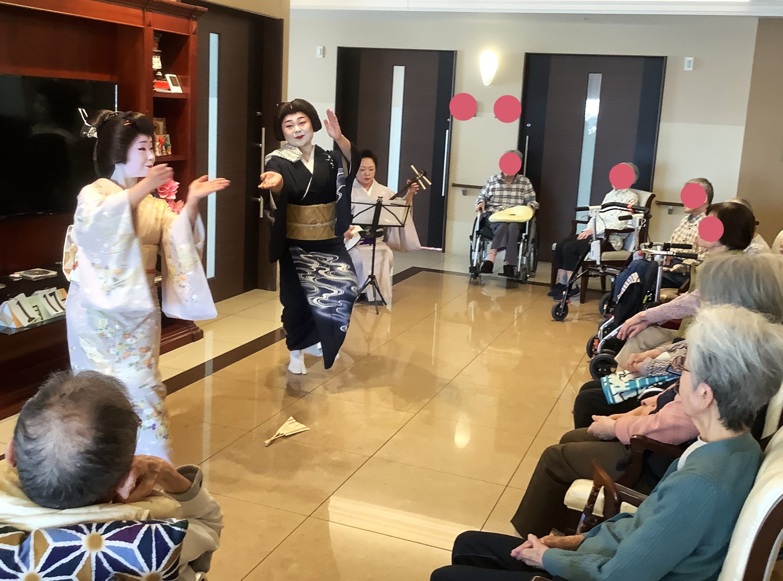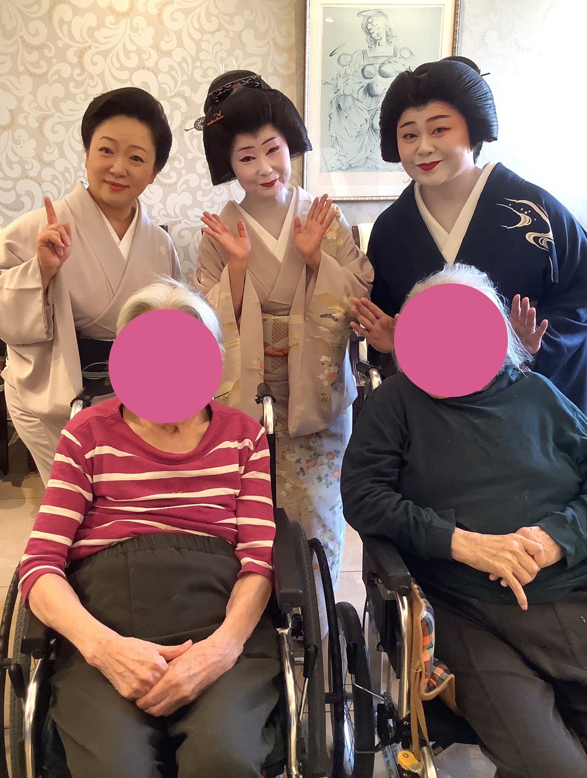 寒い日が続いておりますが、皆様いかがお過ごしでしょうか。 先日は名妓連組合様より芸妓さんが来てくださり、三味線に合わせた舞踊を披露してくださいました。 とても華やかで、施設内が一気に明るい雰囲気に包まれました。 上品で美しい所作に皆様思わず見入っておられました。 利用者様や面会に来られたご家族様との記念写真撮影会も大盛り上がり! 名妓連組合の皆様、本当にありがとうございました。 としわ会では今後も皆様に喜んでいただけますよう、さまざまなレクリエーションを取り入れてまいります☺