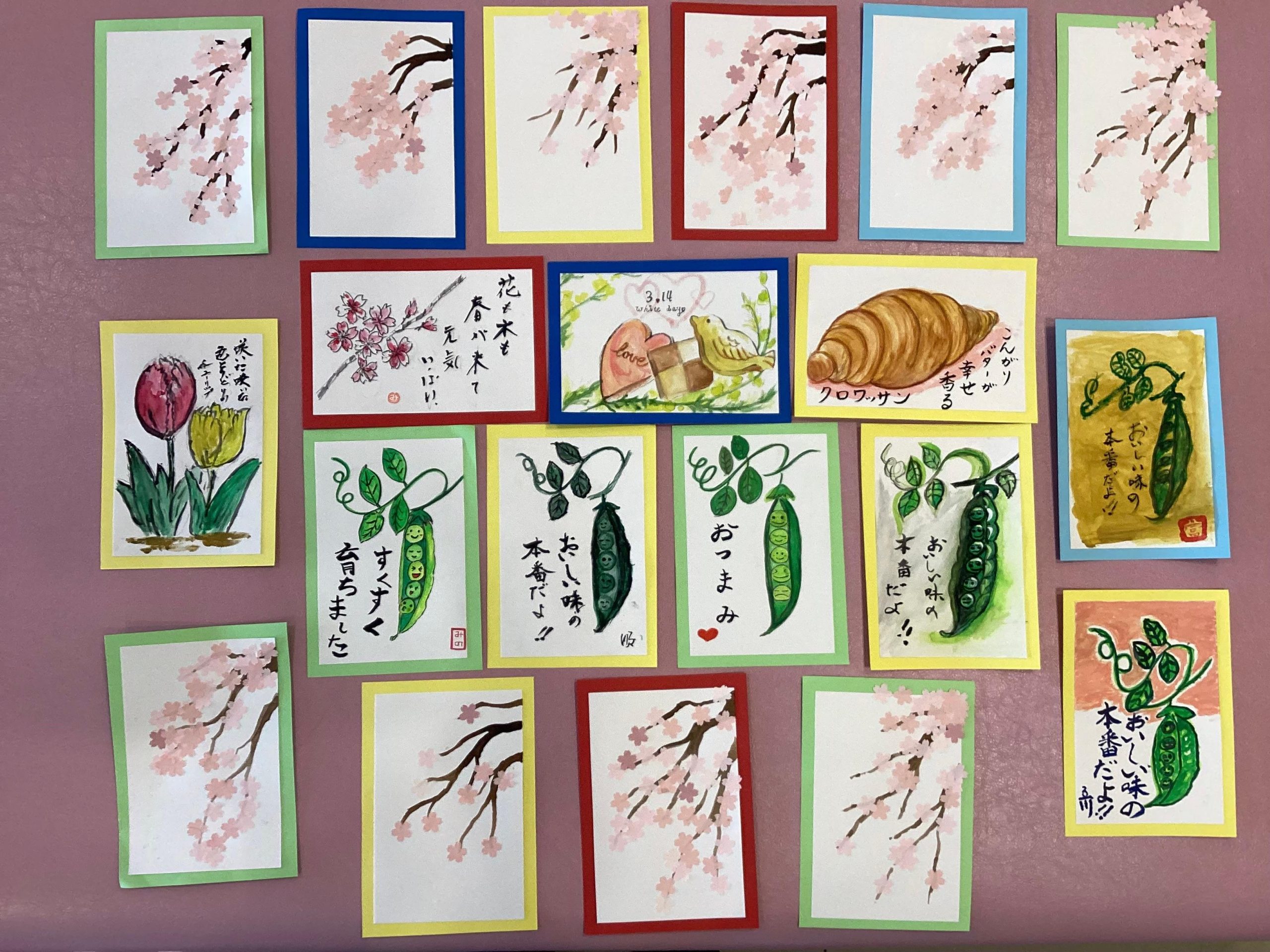 どの作品にも春らしさが感じられ、見ている私たちも一足早く春の訪れを感じ、温かな気持ちになりました。